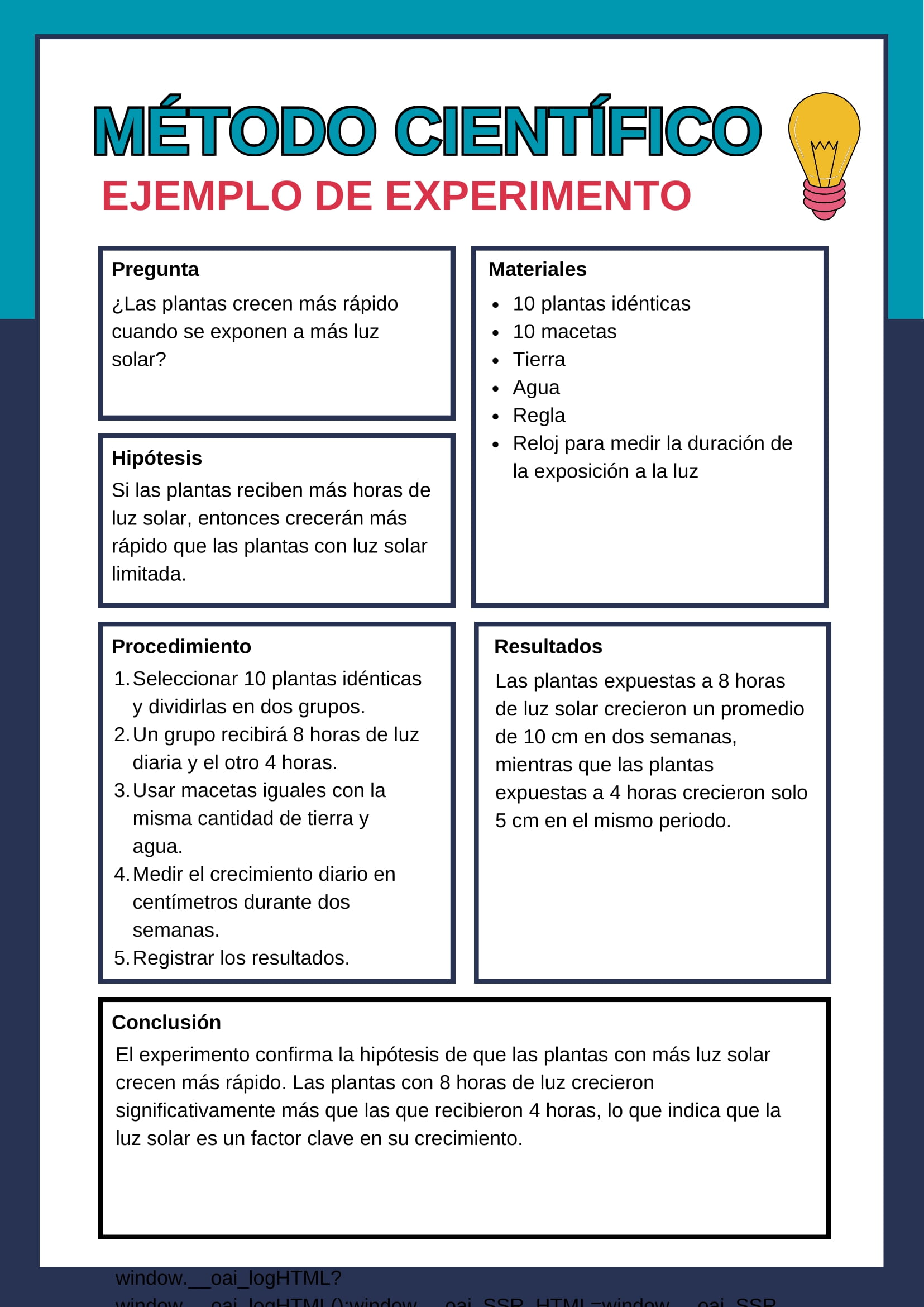 - Personalización: Pide a los niños que dibujen ellos mismos cada paso del proceso, creando su propio diagrama del método científico con ejemplos cotidianos.
