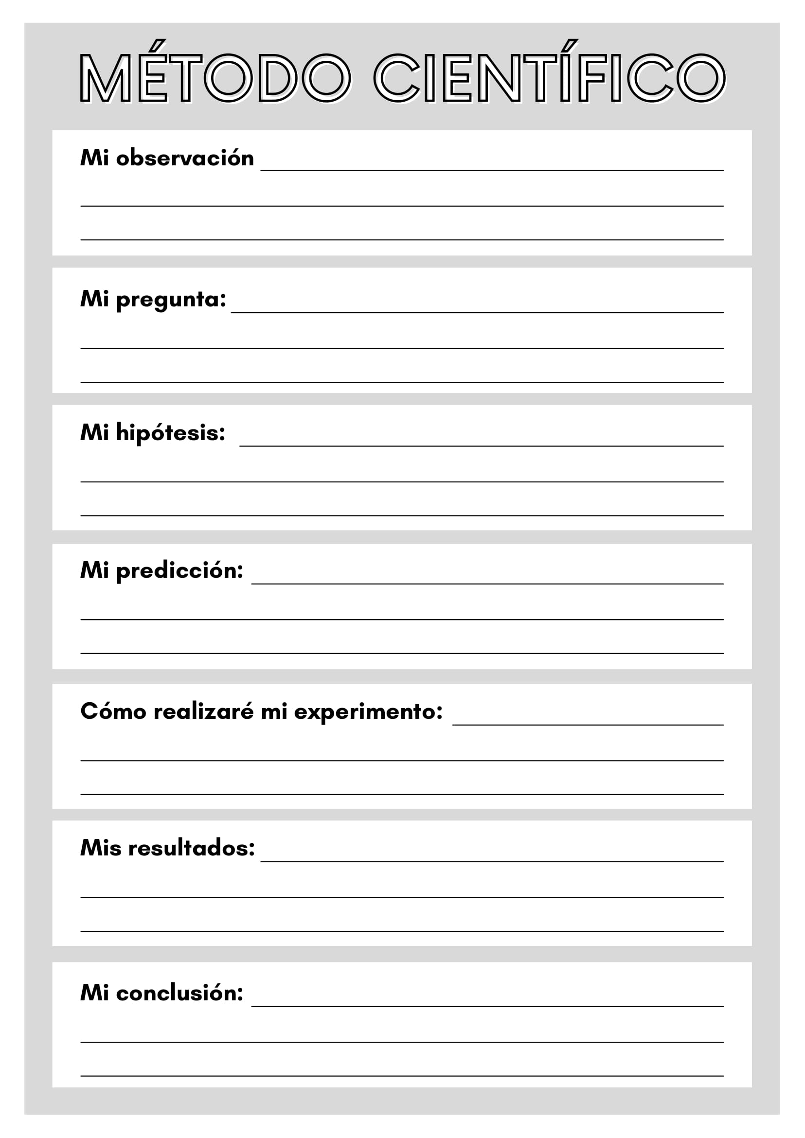 Puedes encontrar varias hojas de actividades del método científico listas para descargar en formato PDF. Estas plantillas son ideales para imprimir y usar tanto en clase como en casa, ayudando a los niños a aprender de manera interactiva y visual.