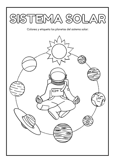 Una lámina creativa con ilustraciones del sistema solar listas para colorear, ideal para que los niños aprendan sobre los planetas mientras desarrollan su imaginación. ¡Perfecta para imprimir y disfrutar en casa o en clase!