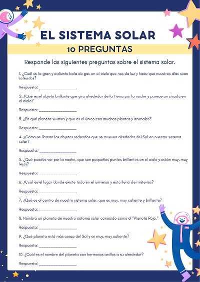 Una ficha con 10 preguntas y respuestas que invitan a los niños a explorar y reflexionar sobre los planetas, las órbitas y otros elementos del sistema solar. ¡Perfecta para reforzar conocimientos en primaria y aprender de forma divertida!